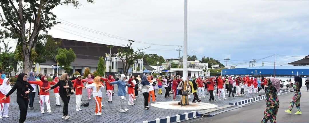 Muara Teweh,Bidik Nasional. Com. Penjabat Ketua Tim Penggerak PKK Kabupaten Barito Utara, Melly Novita, menggelar kegiatan senam pagi bersama di halaman Kantor Bupati Barito Utara pada Minggu (01/06/25). Kegiatan ini turut dihadiri oleh Ketua Dharma Wanita Persatuan (DWP) Barito Utara, Marsiana Muhlis, sejumlah kepala perangkat daerah, anggota PKK, DWP, serta tamu undangan lainnya.Minggu-1-Juni-2025. Acara berlangsung meriah dan penuh semangat, mencerminkan tingginya antusiasme peserta dalam menjaga kebugaran jasmani. Melly Novita menyampaikan bahwa kegiatan senam pagi bersama ini merupakan bagian dari komitmen pemerintah daerah untuk mengajak ASN dan masyarakat menerapkan pola…
